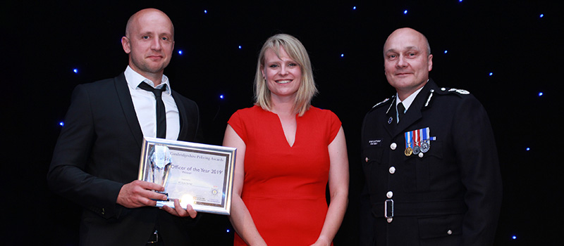 Vicky presents the Cambridge Assessment Student Officer of the Year award to PC Dale Turner at the 2019 Safer Cambridgeshire Policing Awards